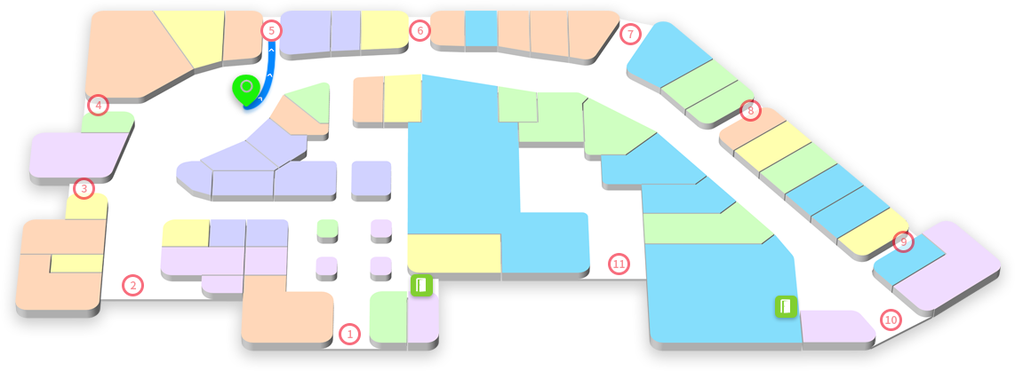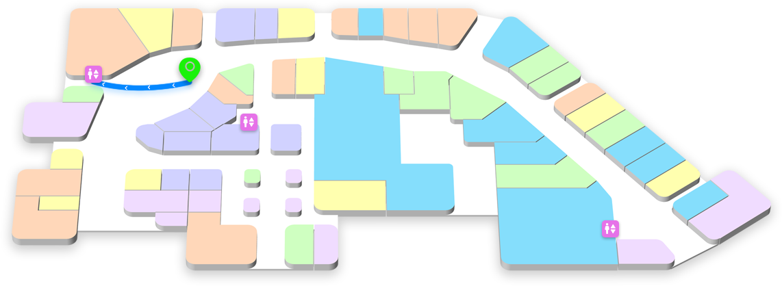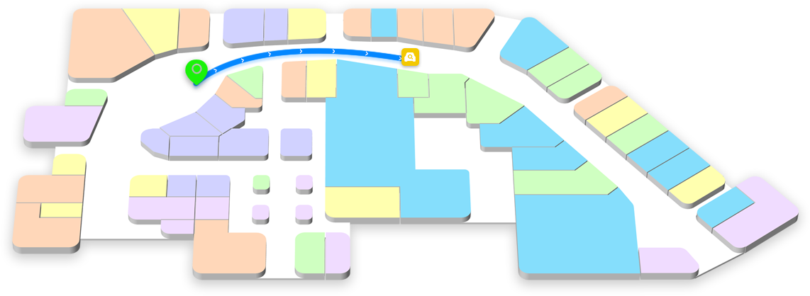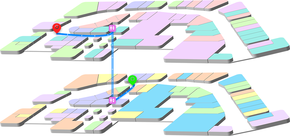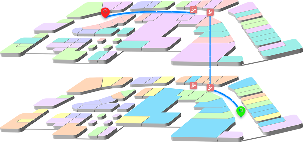 基于无线信号对场景进行建模,导航导览中可实现楼层/区域自主切换。跨楼层跳转快、可靠性强、位置判定精度高